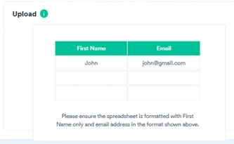 To fix this, check your spreadsheet has the first names listed underneath the "First Name" column and email addresses listed underneath the "Email" column.