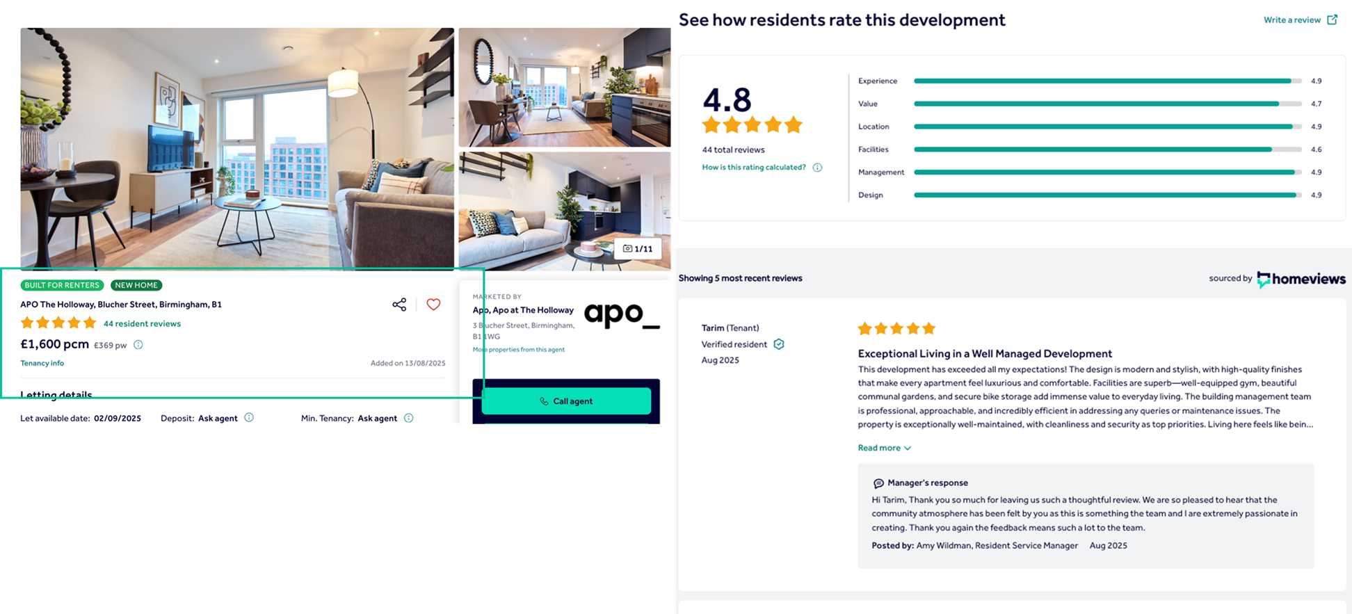 Reviews displayed on Rightmove listings receive up to 30x more views than those on HomeViews alone.