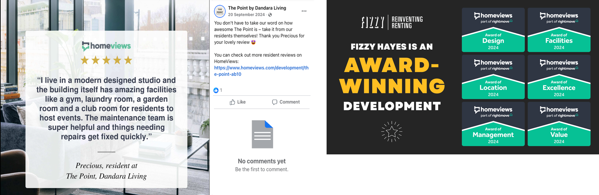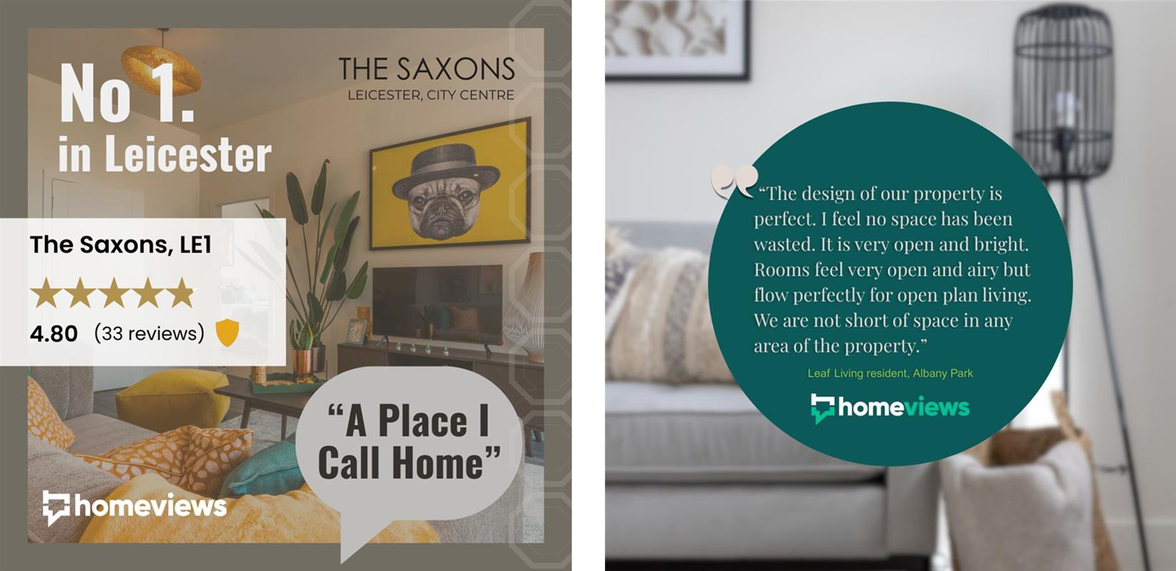 Instagram, Facebook, and LinkedIn posts featuring reviews help brands stand out, showcase credibility, and attract new residents.
